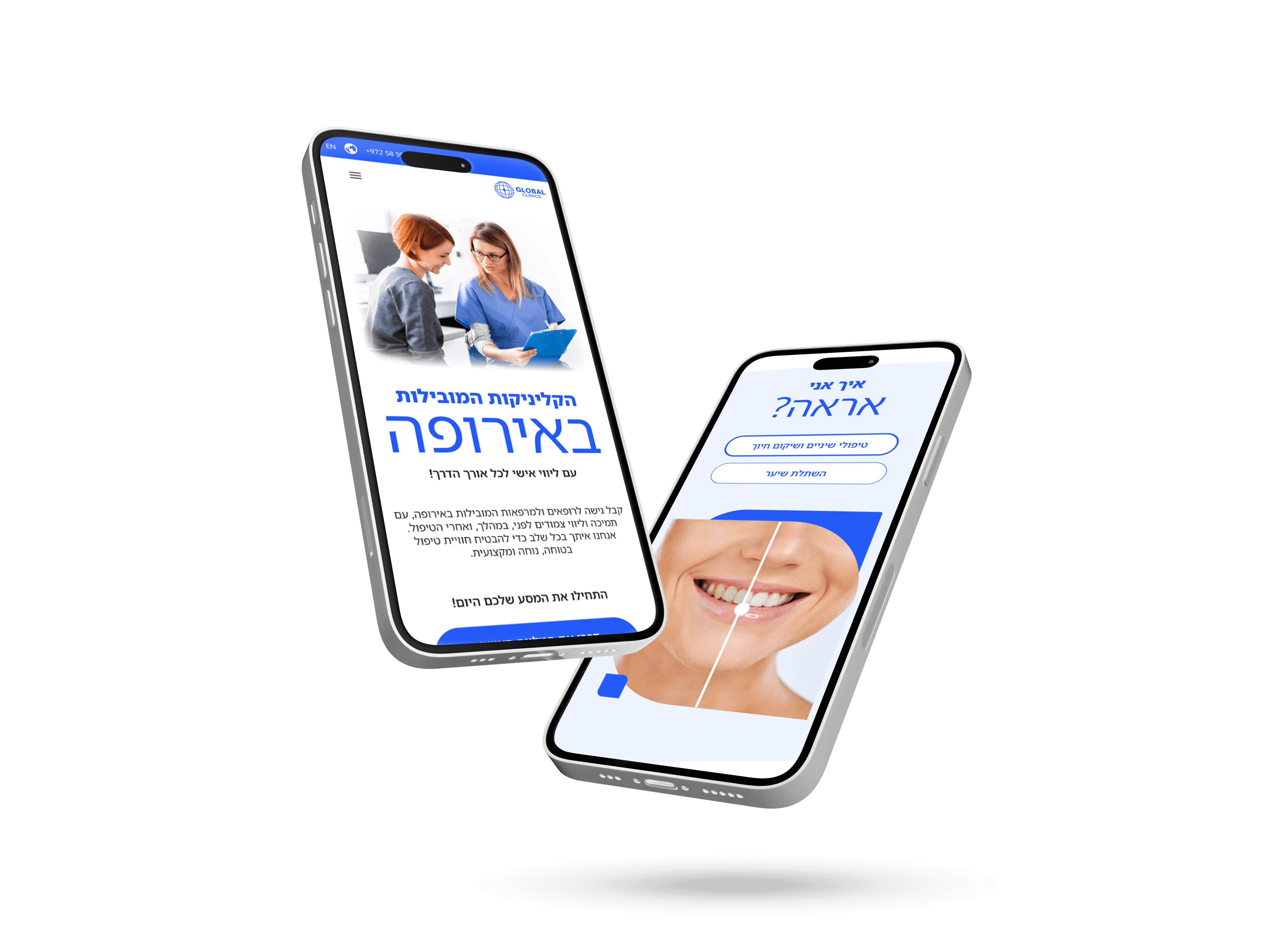 Our studio designed the desktop and mobile homepage for an international hair and dental clinic, for its Hebrew website. The Figma design included desktop animations for enhanced user engagement.